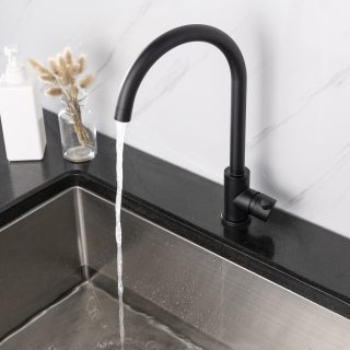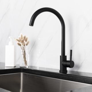 De MERTA keukenmengkraan van het merk QUALIS® is een zeer hoogwaardige kraan uitgevoerd in een chique mat zwarte kleur en is geschikt voor in vrijwel iedere moderne keuken. De MERTA is voorzien van een mengfunctie; met de ééngreepshendel mengt u koud en warm water tot de juiste temperatuur. De keukenkraan heeft een keramisch binnenwerk. Hierdoor blijft de bedieningshendel jarenlang soepel in beweging en laat het de watertoevoer moeiteloos door gaan of sluiten. Bovendien beschikt de MERTA over een draaibare uitloop waardoor de wasbak makkelijker schoon te maken is.
